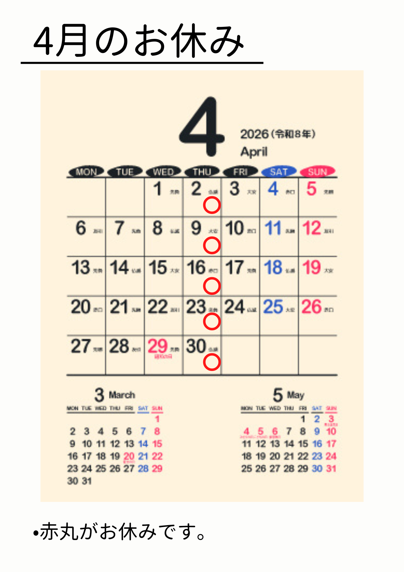 お店からのお知らせ